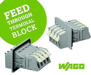 | | | | Sponsored | | | | WAGO’s 4-pole feed-through terminal blocks come equipped with CAGE CLAMP® technology on both sides and levers for easy, tool-free installation, especially for 6 AWG solid conductors. |