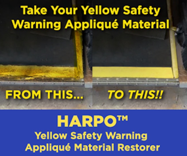 HARPO™ Quickly & Effectively Cleans and Restores Yellow Safety Warning Appliqué Material Found on Kneeling Platforms, Exit Areas and Step Up/Down Areas of Transit Buses, Paratransit Vehicles, Light & Heavy Rail, and Subway Vehicle Entry and Exit Points. Directions for Use: Spray on, Agitate with Scrub Brush or Green Pad, Rinse. Let Dry. It’s that easy.